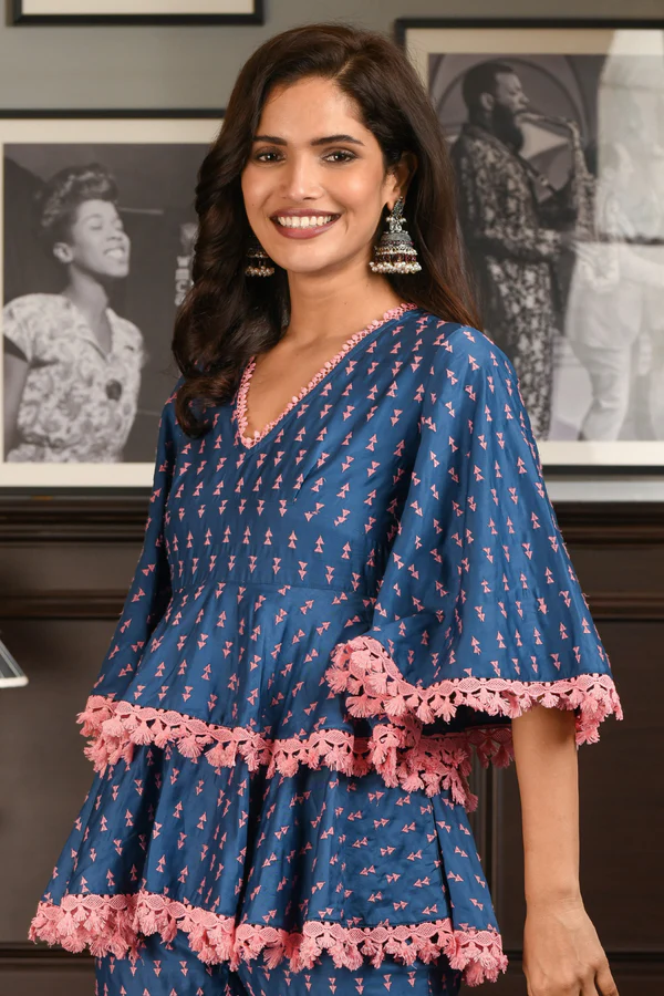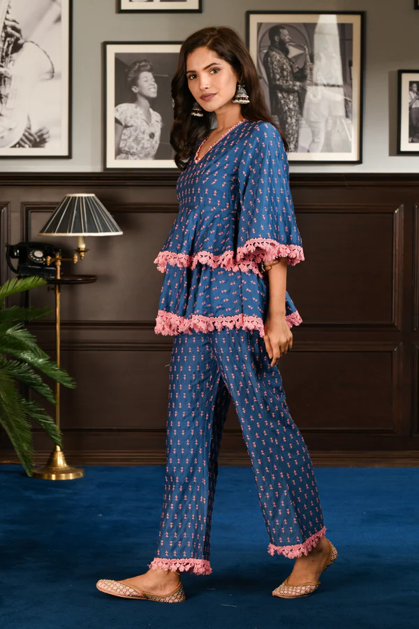 Mulmul Cotton Gauri Light Blue Kurta With Mulmul Cotton Fiza White Pant