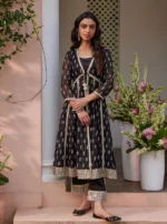 Mulmul Organza Percy Pink Anarkali Kurta With Mulmul Cotton Percy Pink Pant